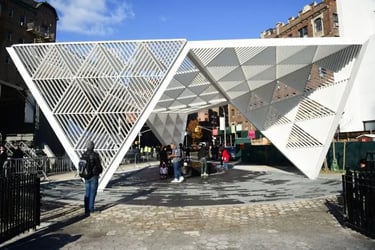 The New York City AIDS Memorial, dedicated in Greenwich Village in 2016, stands as the city’s first large-scale monument to the epidemic. Located near the former site of St. Vincent’s Hospital—the frontline of care during the crisis—it honors the more than 100,000 New Yorkers who died and the communities who fought for their lives. Its soaring steel canopy and engraved texts transform loss into a public space of reflection, visibility, and resilience. Decades in the making, the Memorial is both a tribute to those gone and a testament to the activism that demanded the city finally remember.