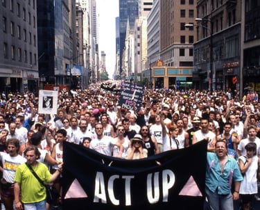 Founded in New York in 1987, ACT UP transformed mourning into militancy. While candlelight vigils and funerals made AIDS grief visible, ACT UP’s “politics of mourning” took that visibility further—into the streets, the halls of power, and the media spotlight. Political funerals, die-ins, and confrontational protests demanded accountability from government and industry, declaring that the dead would not be forgotten and the living would not be ignored. In ACT UP’s hands, grief became a strategy, remembrance became resistance, and mourning itself became a political act.
