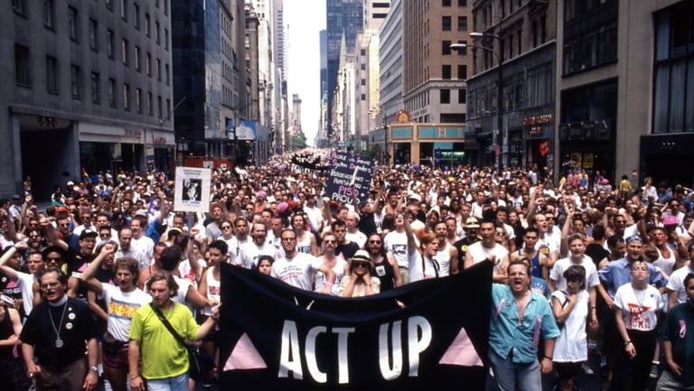 As AIDS spread through New York City, Pride parades became more than celebrations of liberation—they became processions of mourning and defiance. Banners carried the names of the dead, moments of silence interrupted music and dancing, and activists transformed joy into a demand for recognition and justice. Pride in the 1980s held grief and celebration side by side, marking the parade route as both festival and memorial ground.