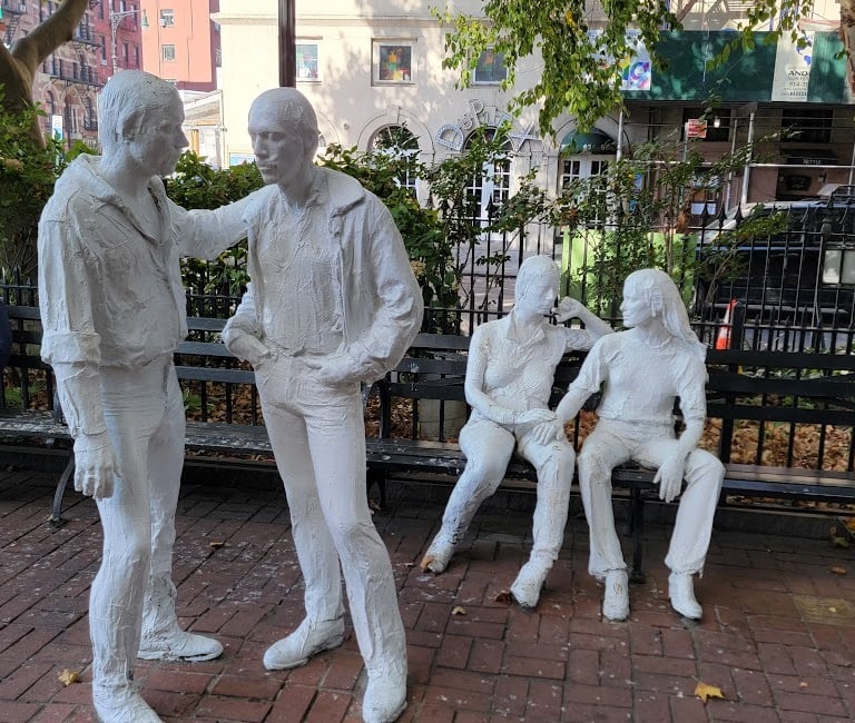 The Stonewall National Monument in Christopher Park honors the 1969 uprising that sparked the modern LGBTQ+ rights movement. Yet the same park also became a site of mourning during the AIDS crisis, hosting vigils, protest gatherings, and the quiet presence of those grieving in its shadows. Linking Stonewall to AIDS memorialization reveals a layered history: the fight for liberation and visibility did not end in 1969 but was redefined in the face of mass death and neglect. Today, the Monument stands not only for Stonewall but also as a reminder of the overlapping struggles that shaped queer New York, where pride and grief, resistance and remembrance, have always coexisted.