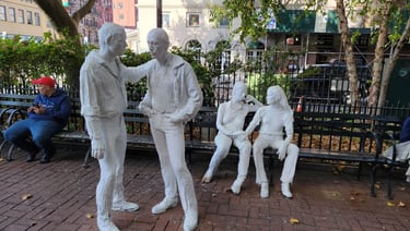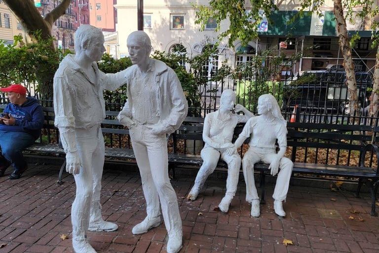 By the time the monument was installed in New York, the AIDS crisis had reshaped its meaning. Originally intended as a celebration of ordinary presence, the figures became a public elegy. The men’s gesture of touch echoed the final embraces of lovers at hospital bedsides. At the same time, the women’s quiet solidarity embodied the indispensable, often invisible labor of lesbian caregivers who sustained their communities when institutions turned away.⁴