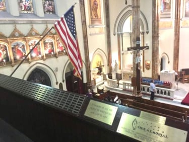The Village AIDS Memorial at the choir loft of St. Veronica's Roman Catholic Church, 2017. Photo by Michael O'Loughlin. https://www.americamagazine.org/faith/2017/07/28/hidden-new-york-choir-loft-early-aids-memorial-faces-uncertain-future/