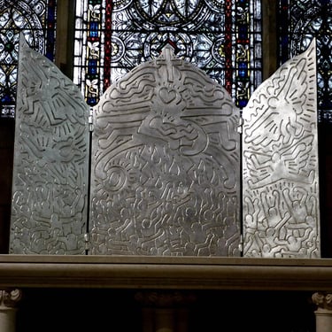 One of Haring's last works, the triptych is made of cast bronze plated in white gold. The subject is Haring's personal interpretation of the Christian Apocalypse, with love ultimately triumphing. Haring's funeral was held in St. John the Divine.