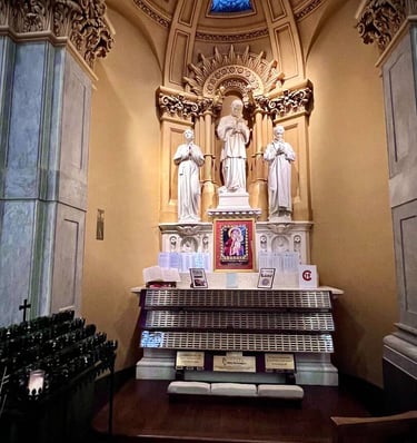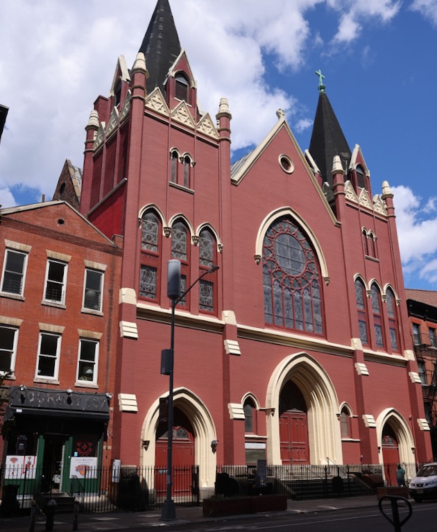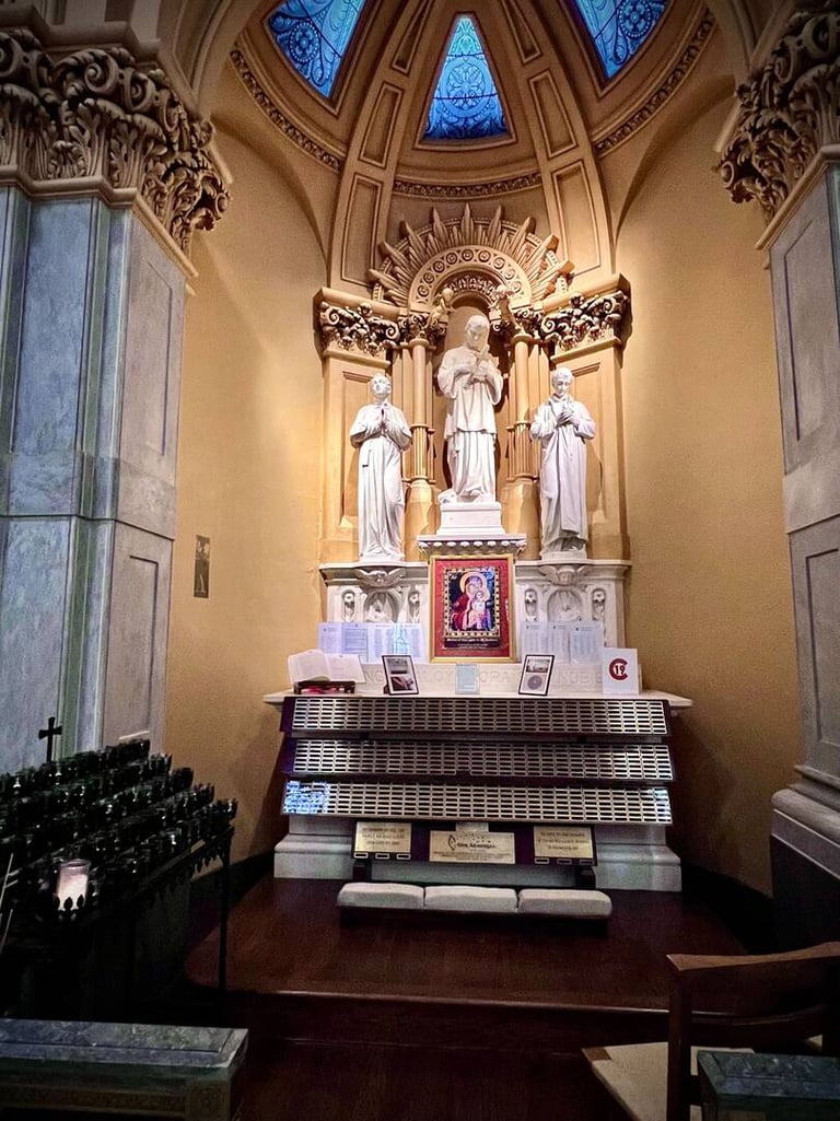 Village AIDS Memorial plaques at the Church of St. Xavier. Housed initially at St. Veronica’s Church, the Village AIDS Memorial plaques were relocated here after its closure, linking Xavier’s long history of faith and activism during the AIDS crisis to the present. In 1986, Xavier became the first Catholic parish in the United States to hold a memorial service for a man who had died of AIDS, and today it remains home to active LGBTQ ministries and the memory of those lost.