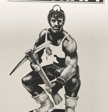 A 1970s poster for the Mineshaft depicts a rugged construction worker gripping a phallic pickaxe, merging working-class iconography with queer eroticism. This hyper-masculine aesthetic shaped later Pride imagery, where erotic power was reclaimed as defiance during the AIDS crisis, even as it reinforced narrow standards of beauty and visibility. “The Mineshaft,” NYC LGBT Historic Sites Project, accessed September 17, 2025, https://www.nyclgbtsites.org/site/mineshaft/.
