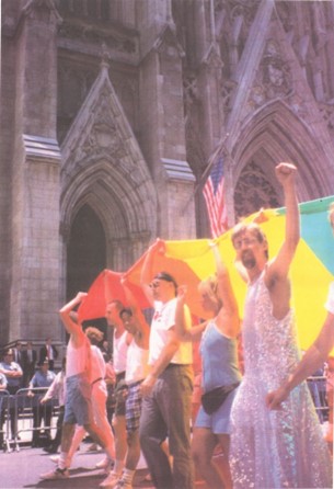 Gilbert Baker at St. Patrick’s Cathedral, Stonewall 25 (1994)