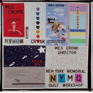 Quilt panels for Wes Cronk, 1988–1989, National AIDS Memorial, Block #1251 (01–08), AIDS Memorial Quilt, accessed April 23, 2025, https://www.aidsmemorial.org/quilt.