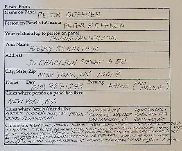 Each panel made at the New York City Quilt Workshop began not with fabric, but with a piece of paper. Every submission included a $5 donation and a memorial record that asked for a name, a relationship, and a few words of tribute. These simple forms, now preserved in the LGBT Community Center Archive, reveal a more intimate layer of the Quilt. Some records read like love letters, full of warmth, humor, and small details that captured a life. Others were sparse, written with the restraint of people carrying heavy grief. The handwriting itself often spoke volumes — shaky letters traced by parents, quick notes from friends, careful lines from partners who wanted every word to be just right.